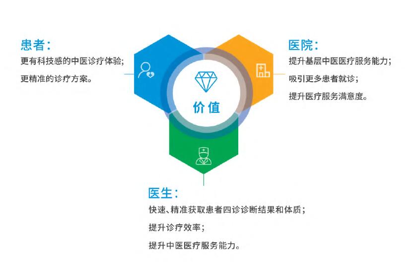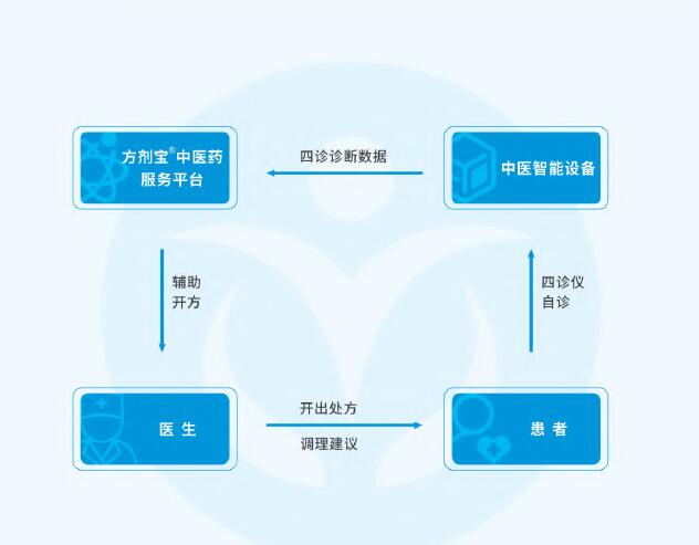 為進一步強化提高中醫診療“望聞問切”服務能力,以打造準確、客觀、標準、高效中醫輔助診斷工具為目標,寶榮科技在方劑寶中醫藥服務平臺基礎上,推出中醫人工智能診斷設備——智能中醫四診儀,平臺與設備軟硬件結合應用,真正做到輔助臨床醫生望聞問切、四診合參 、辨證分型中醫診療方式。患者通過設備的四診信息進行采集后,將標準化的四診數據傳輸到方劑寶平臺,醫生將根據標準的四診結果,通過方劑寶輔助醫生為患者開出個性化中醫治療/調理處方,讓患者獲得全方位的現代化中醫診療服務。