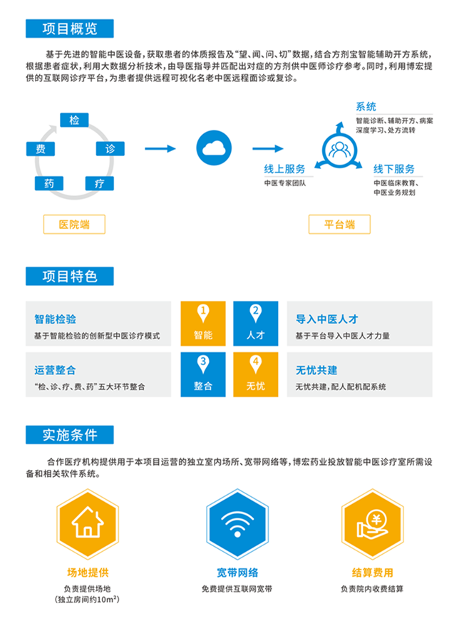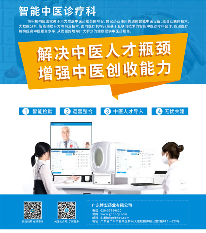 智能中醫診療室應用中醫“互聯網+”人工智能技術的創新型中醫診療模式,借助智能中醫四診儀獲得可視化、標準化的診斷報告,為醫師提供更精準的數據化診療依據,再結合方劑寶中醫智能輔助開方系統為患者診療開方。智能中醫診療科通過“線上+線下”就診模式,為患者帶來先進、便捷、精準的中醫健康管理服務。